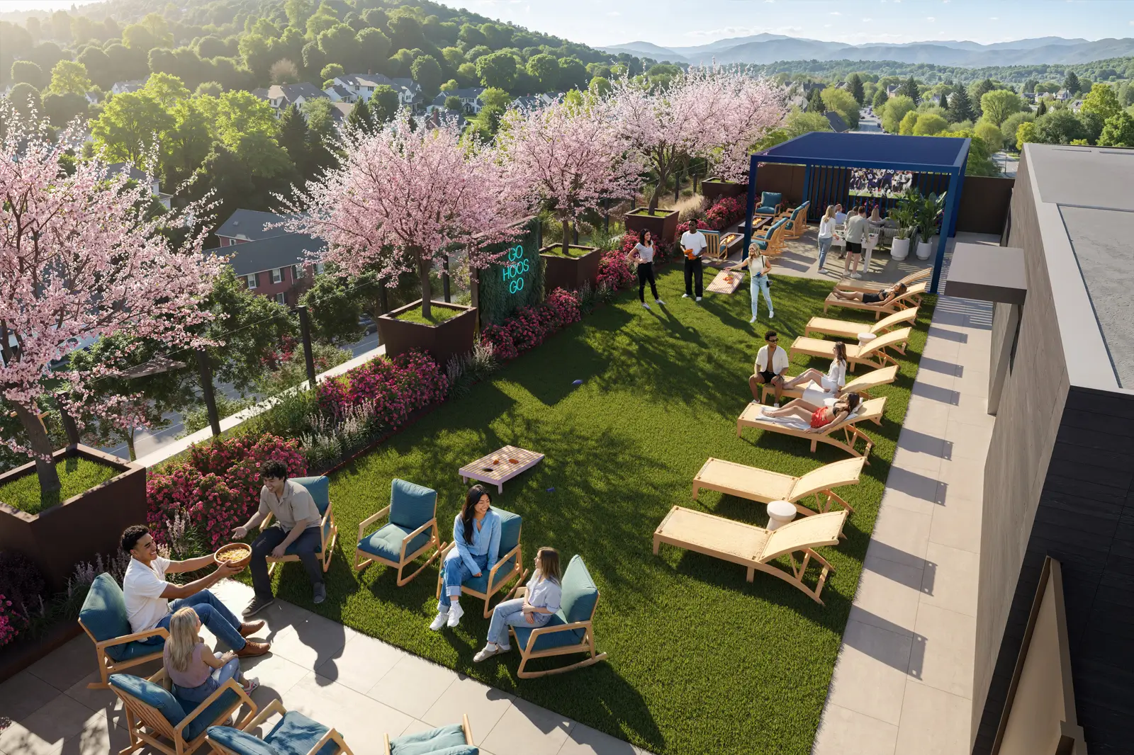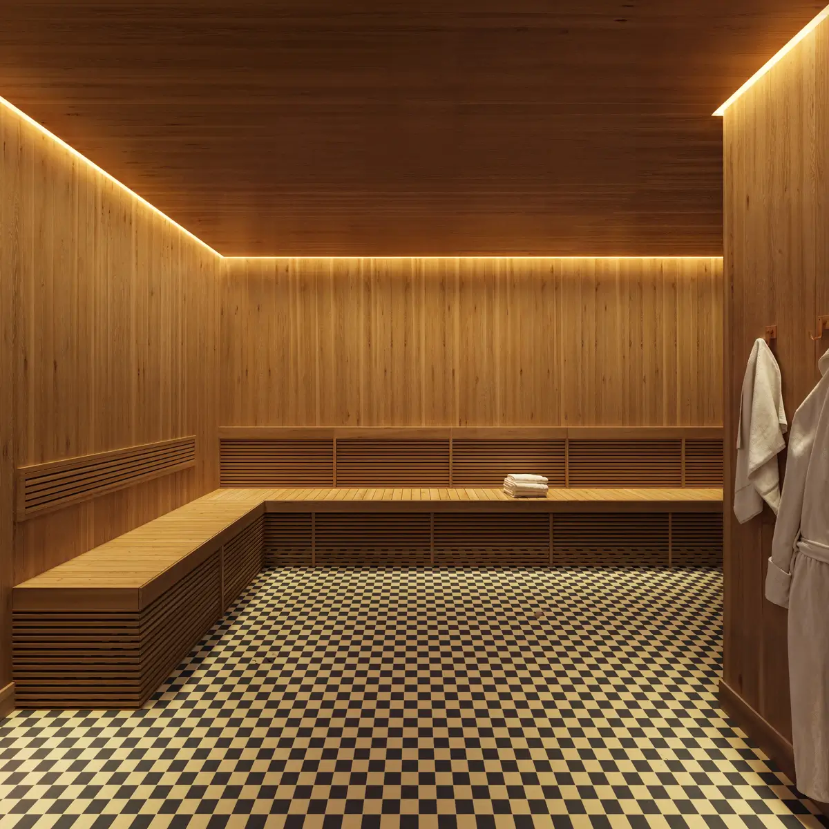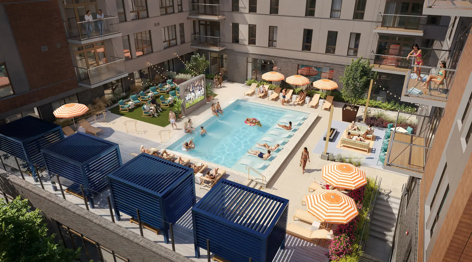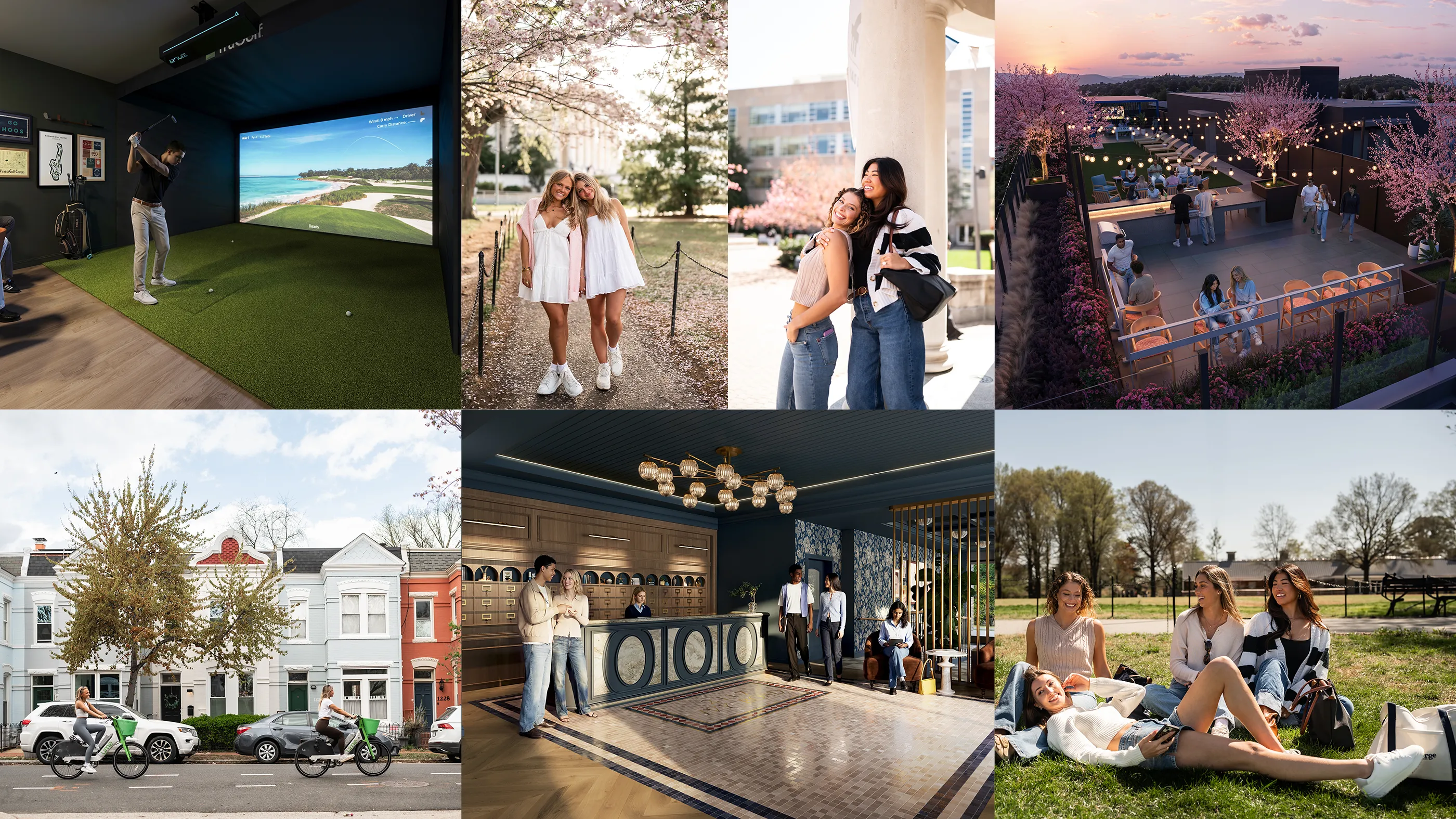 You wake up in your penthouse balcony apartment, start the day with a sunrise yoga class with your roomies and a post-workout sauna sesh, all before your first lecture. Cold brew in hand, you head out caffeinated and ready. After class, your roommates are waiting for you in the study lounge to start that group project that you know you'll ace. The rest of the afternoon flows between the heated rooftop pool with the Jumbotron on, ready to watch the Cavs win... Again. By night, it's golf simulators in the clubhouse and a spray tan before bed.